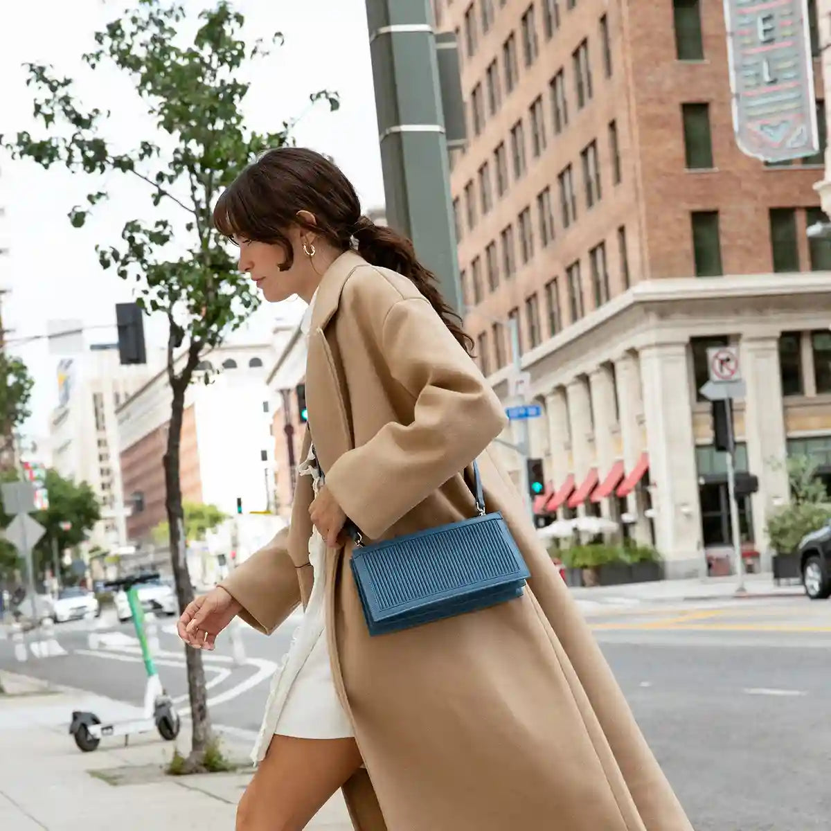 If your loved one prefers sleek, minimalist designs, the Athena Slim Bag in Muted Blue is the way to go. Its slim profile makes it perfect for those who like to carry just the essentials—phone, keys, and cardholder—without the bulk. The muted blue color offers a cool, refined aesthetic, and the adjustable strap ensures comfort and convenience. This bag is ideal for casual outings or as a day-to-night accessory.