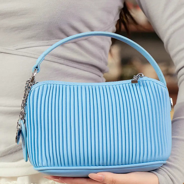 The Ella Crossbody is one of the hottest selling bags in the collection for a reason - it's got the looks, and the versatility. Featuring a luxurious pleated material, it's a must-have bag that you need in your life. Tote it on your arm, wear it as a crossbody, or a shoulder bag, however you want to wear it, you will look extra cute.