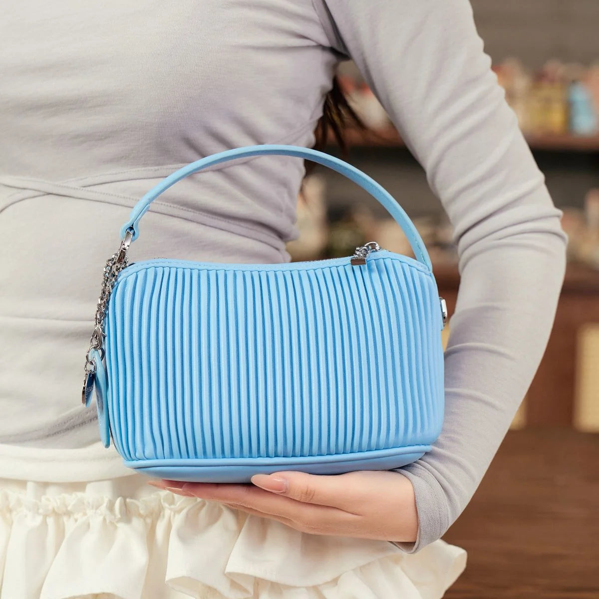 The Ella Crossbody is one of the hottest selling bags in the collection for a reason - it's got the looks, and the versatility. Featuring a luxurious pleated material, it's a must-have bag that you need in your life. Tote it on your arm, wear it as a crossbody, or a shoulder bag, however you want to wear it, you will look extra cute.