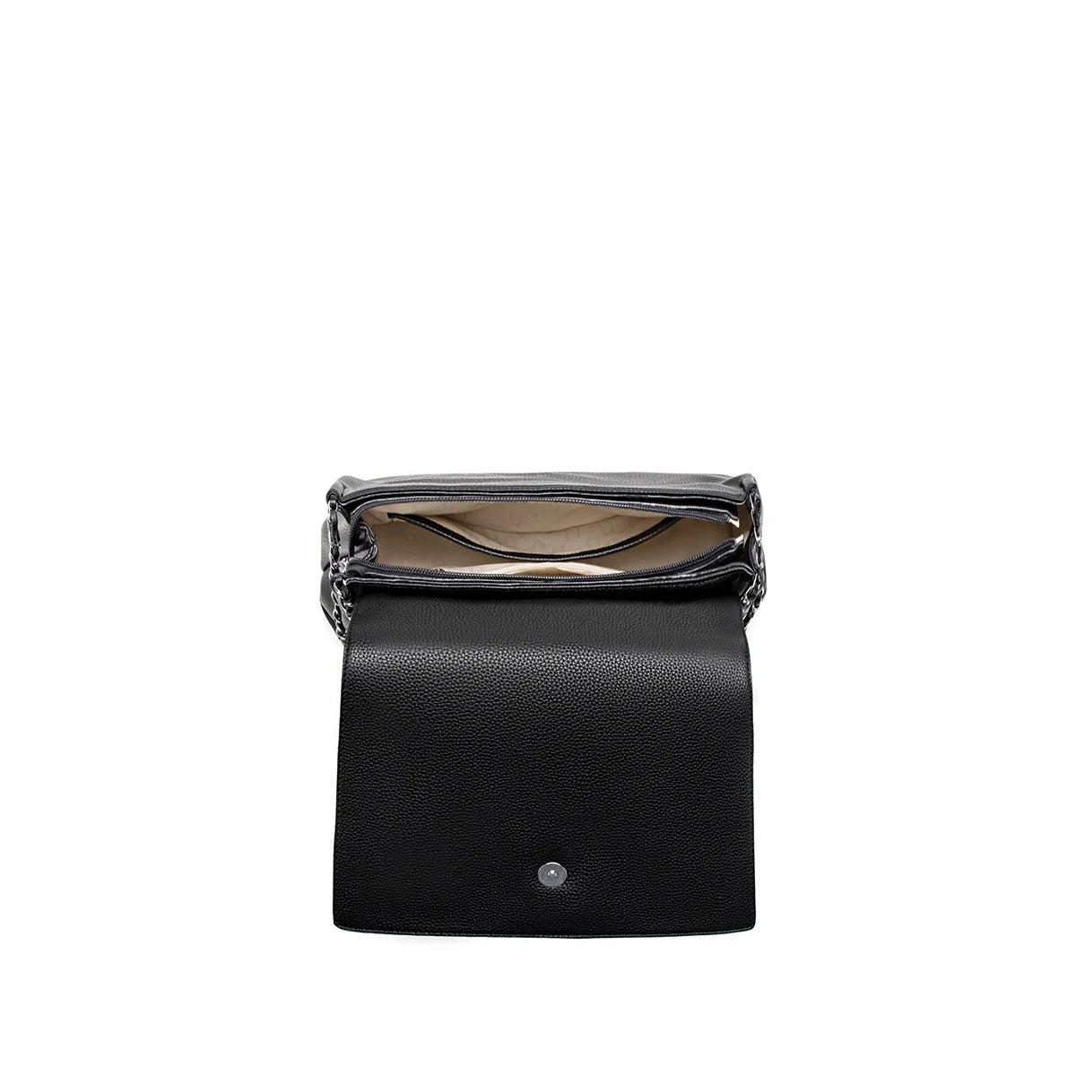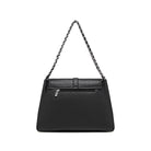 - Secure Closure: A foldover flap with a magnetic closure and top zip closure keeps your items secure, while double chain shoulder straps with vegan leather detailing and a decorative buckle strap add a stylish touch. Includes interior slip and zip pockets, an exterior back zip pocket, and a structured design for everyday elegance.