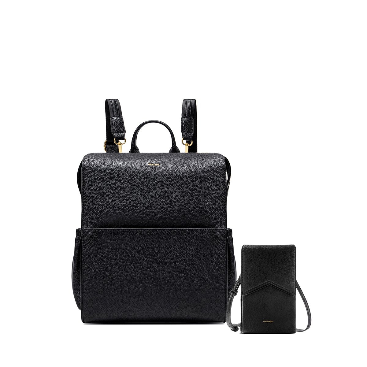 Upgrade your style with the Kylie Backpack Small and Karla Phone Crossbody. Made from recycled vegan leather, the Kylie offers compartments for your iPad and essentials, while the Karla keeps your phone and cards handy with a detachable strap. PETA-approved and eco-friendly, this chic duo is perfect for any occasion.