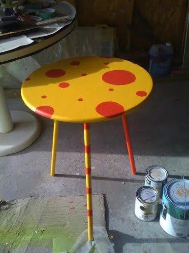 Chloe repainting secondhand furniture for the office!
