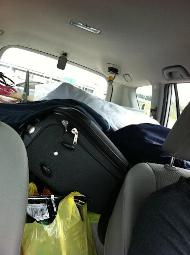 Driving to the US for trade shows. Car full of samples and displays.