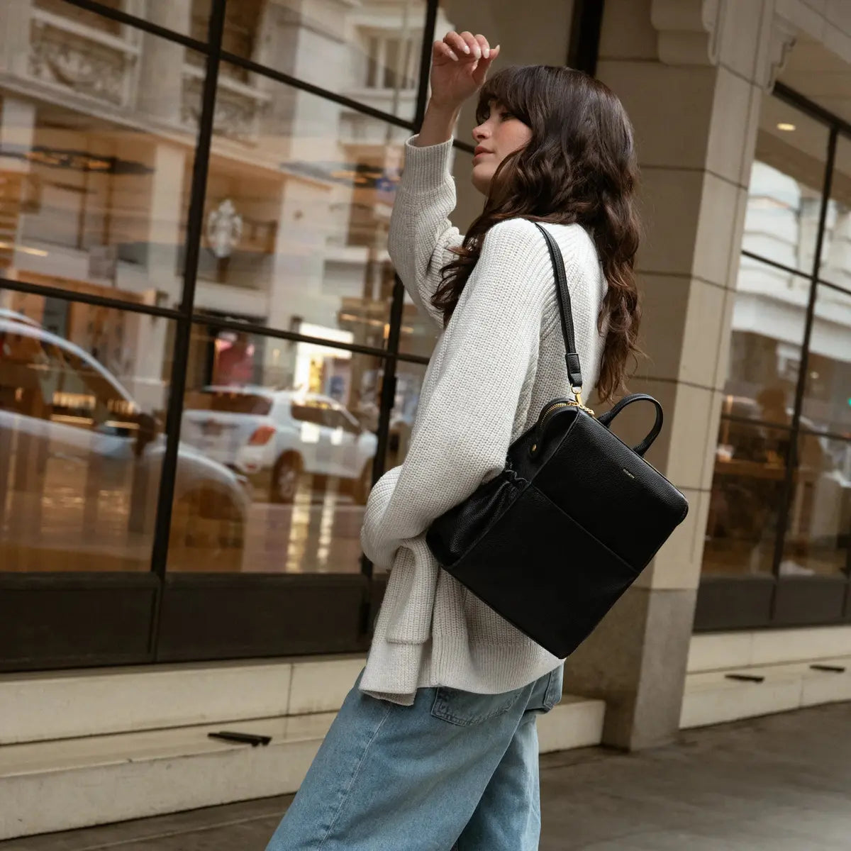 The Kylie Backpack Small is the perfect blend of style, functionality, and sustainability. Designed for those who love hands-free convenience, this compact vegan leather backpack is ideal for everyday wear, offering just the right amount of space to keep your essentials organized while maintaining a sleek, minimalist look. Crafted from premium, cruelty-free vegan leather, this versatile small backpack is perfect for work, travel, or casual outings.